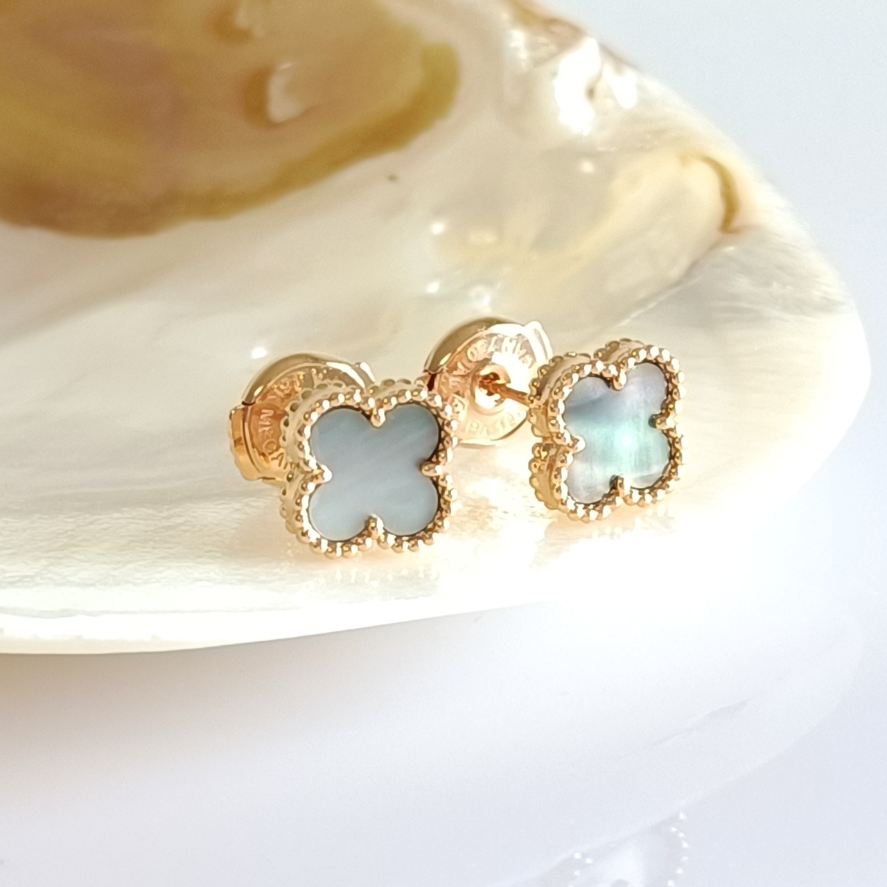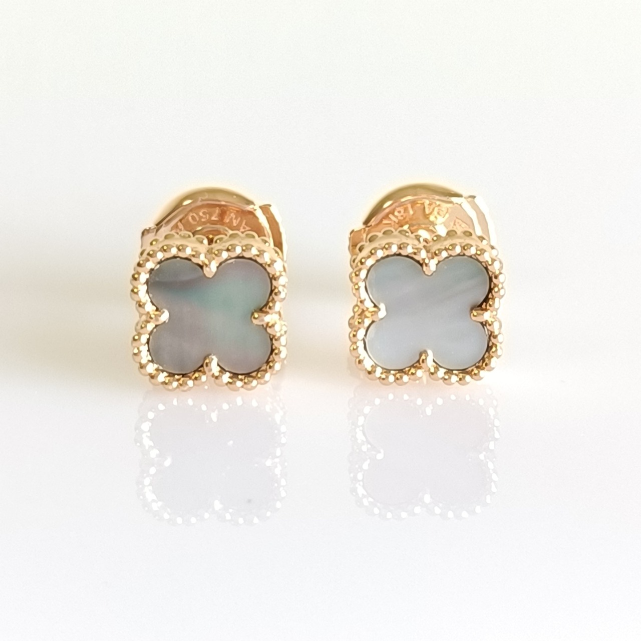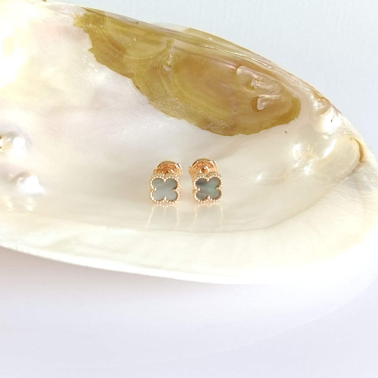 黒蝶貝 ローズゴールド ミニクローバーピアス 9.5mm
