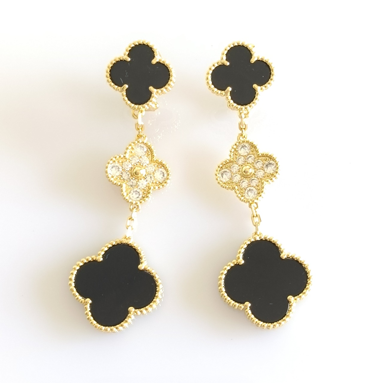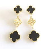 オニキス パヴェ イエローゴールド 3pクローバーピアス
