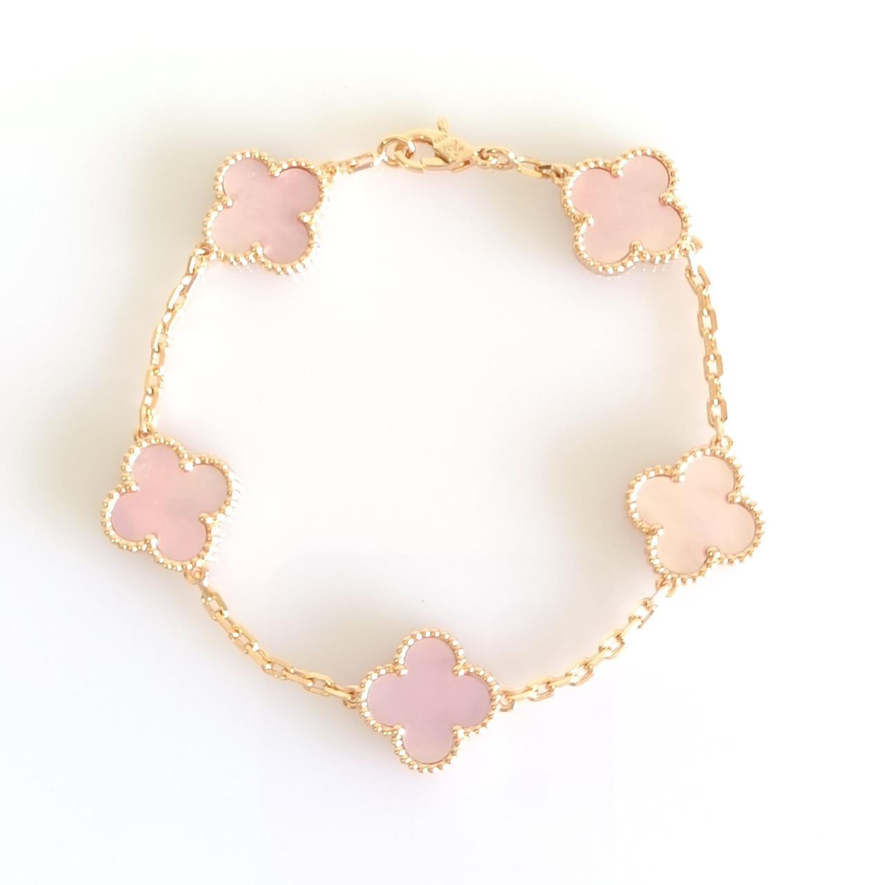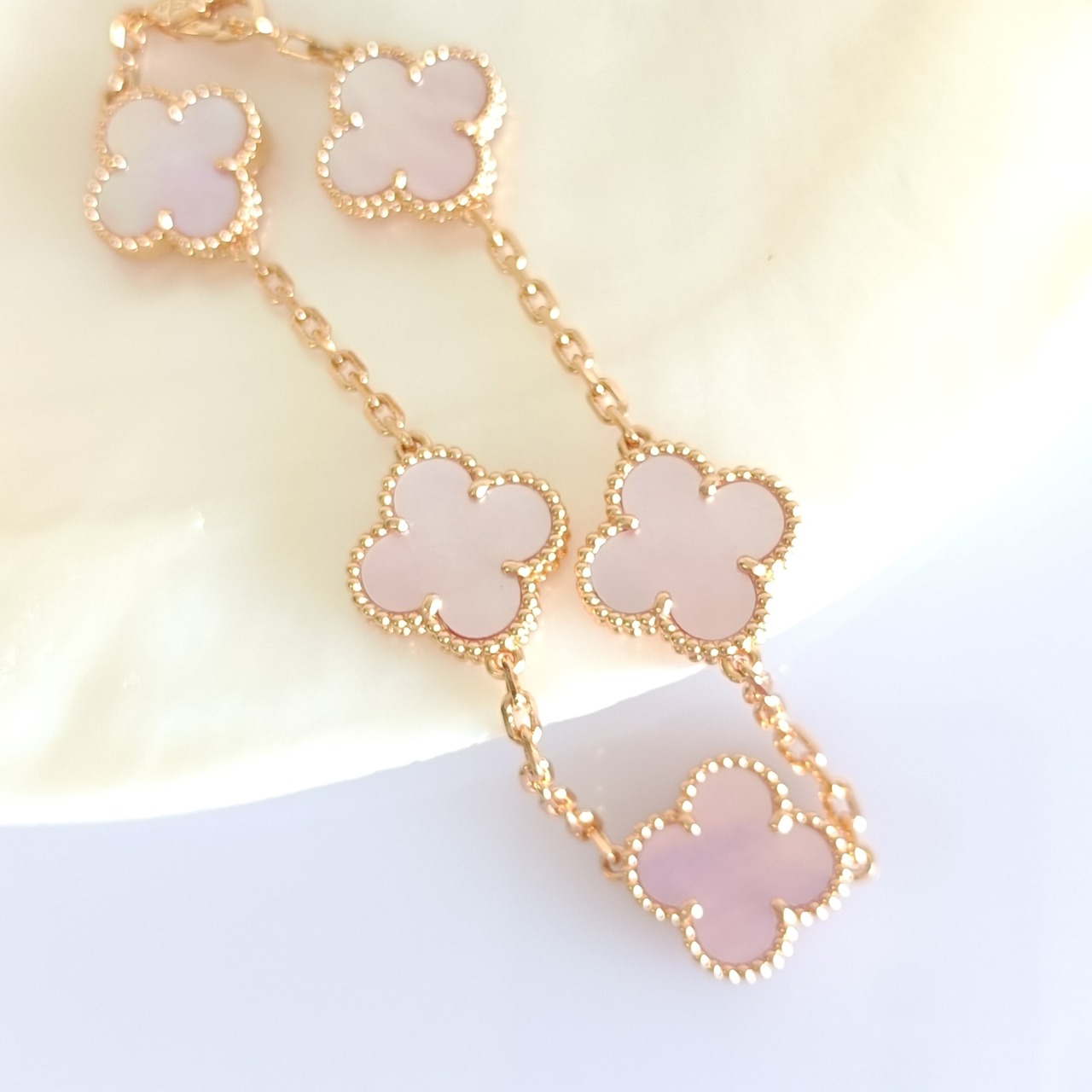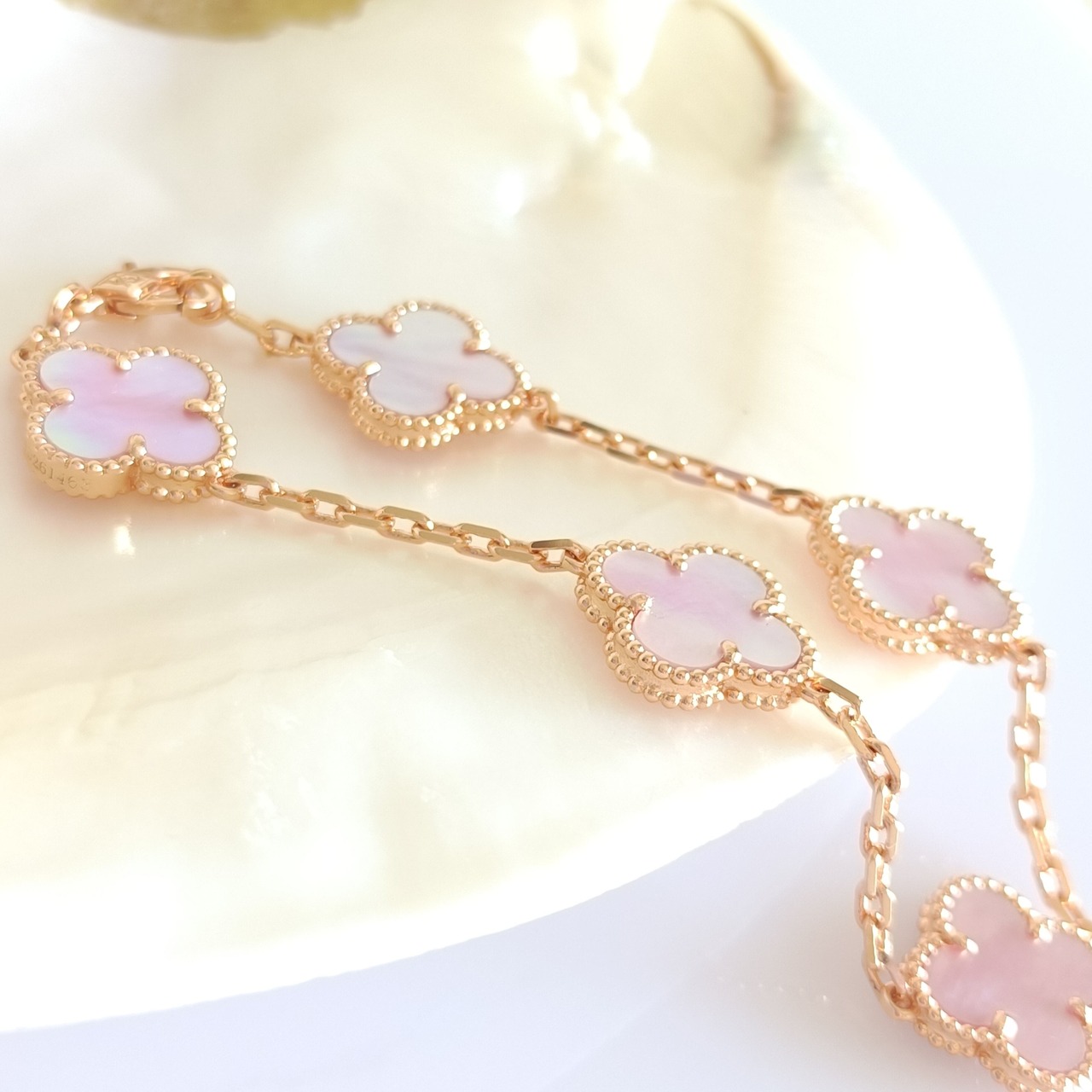 ピンク蝶貝 ローズゴールド クローバーブレスレット