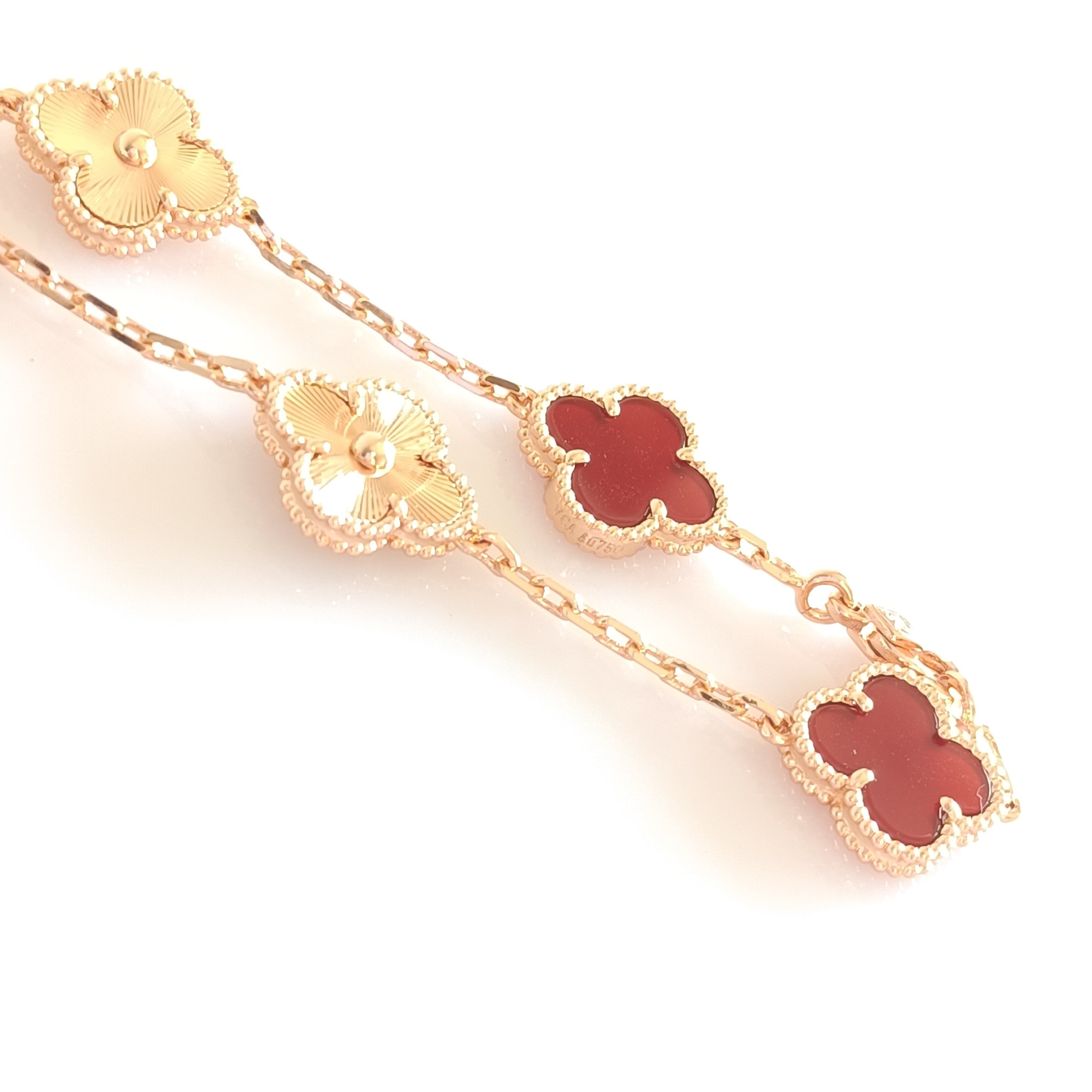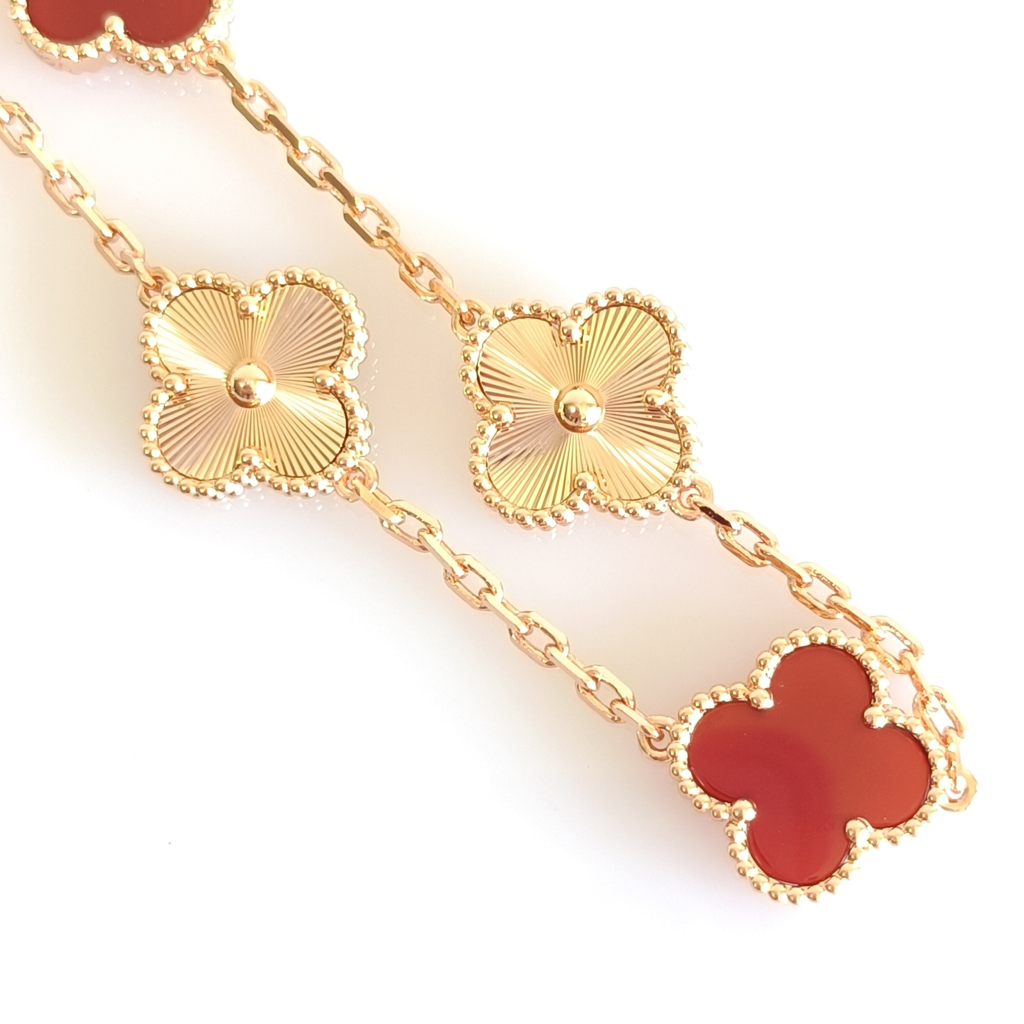 カーネリアン ギヨシェ ローズゴールド クローバーブレスレット
