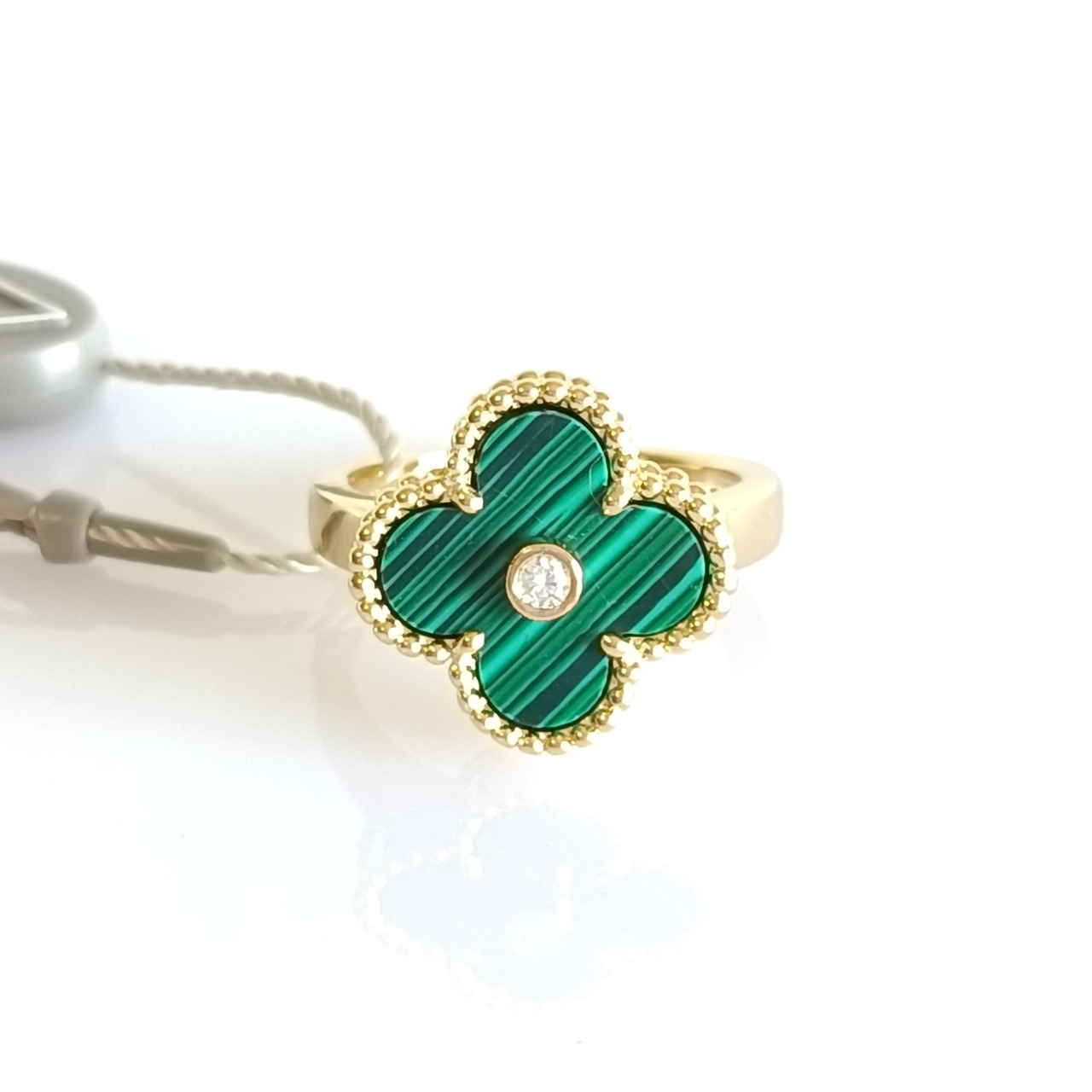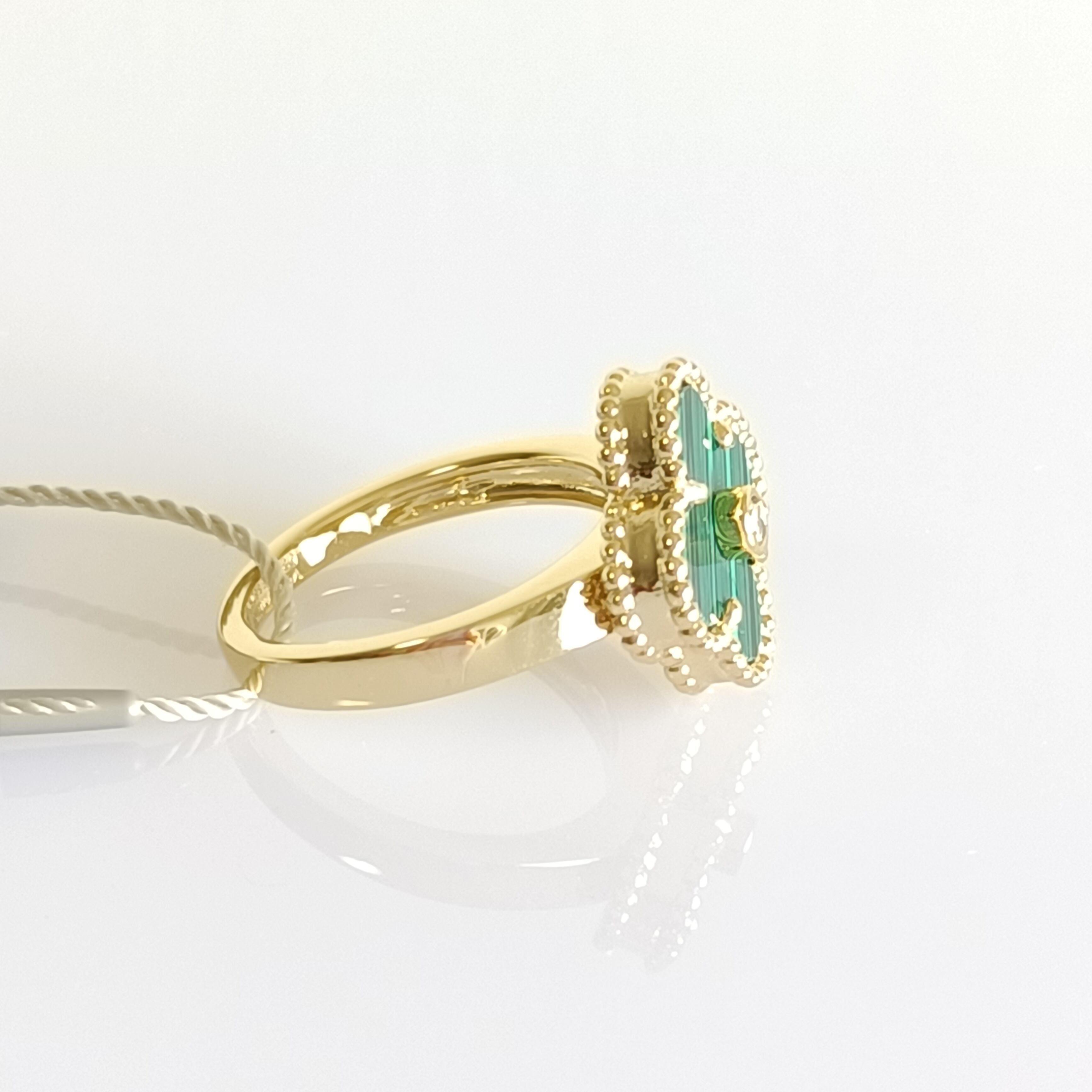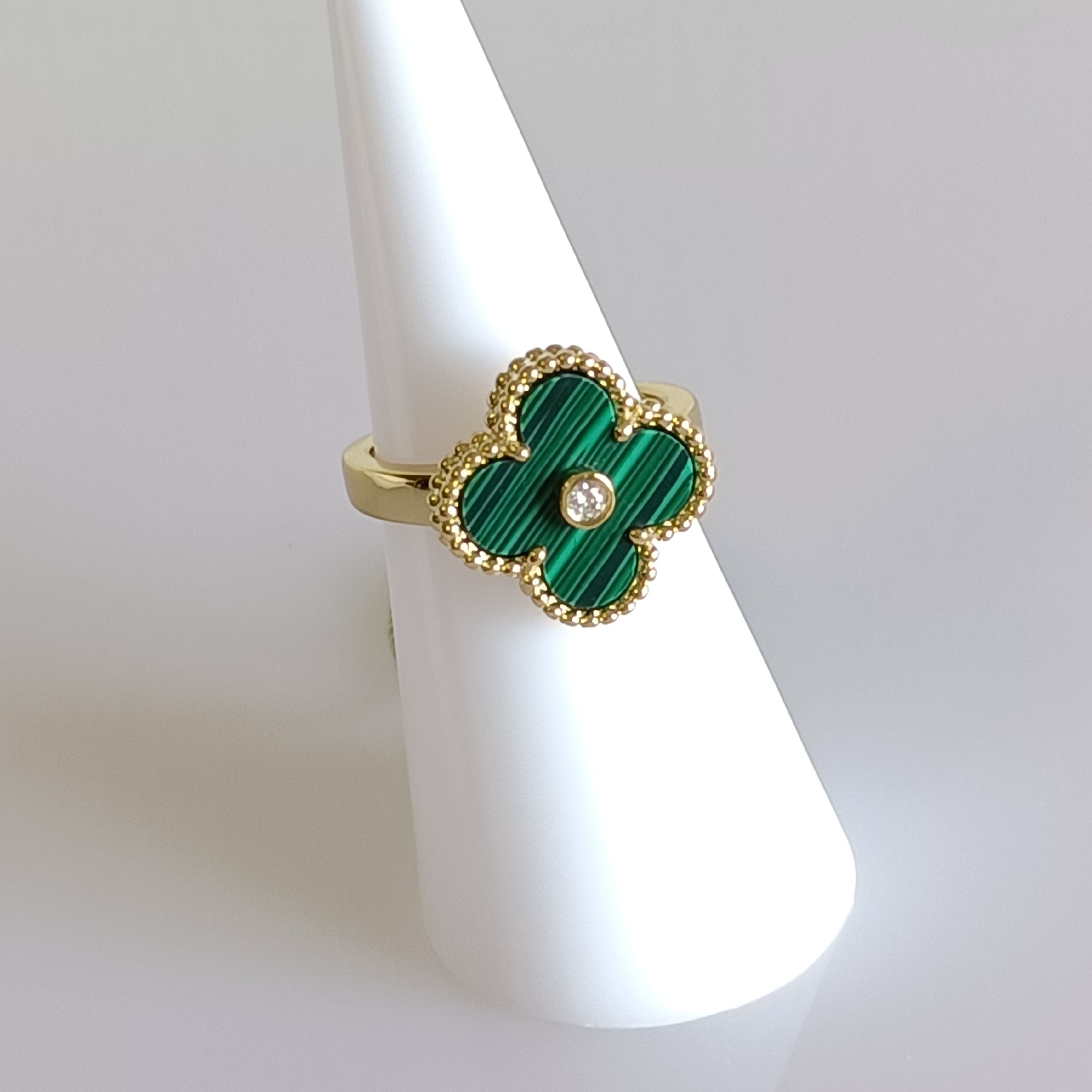 11号 マラカイト ダイヤ イエローゴールド クローバーリング 15mm