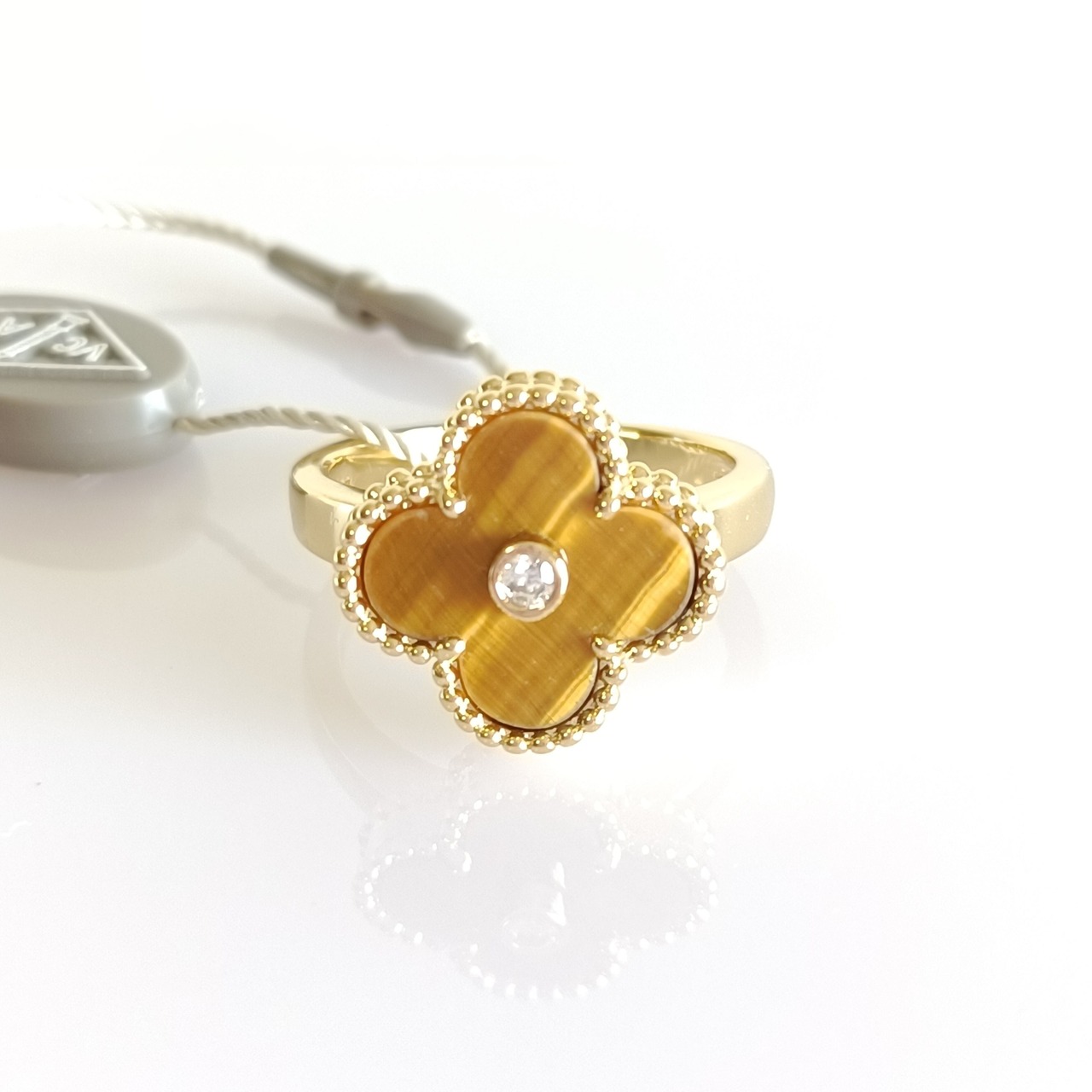14号 タイガーズアイ ダイヤ イエローゴールド クローバーリング 15mm
