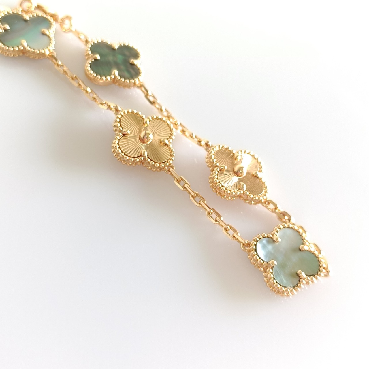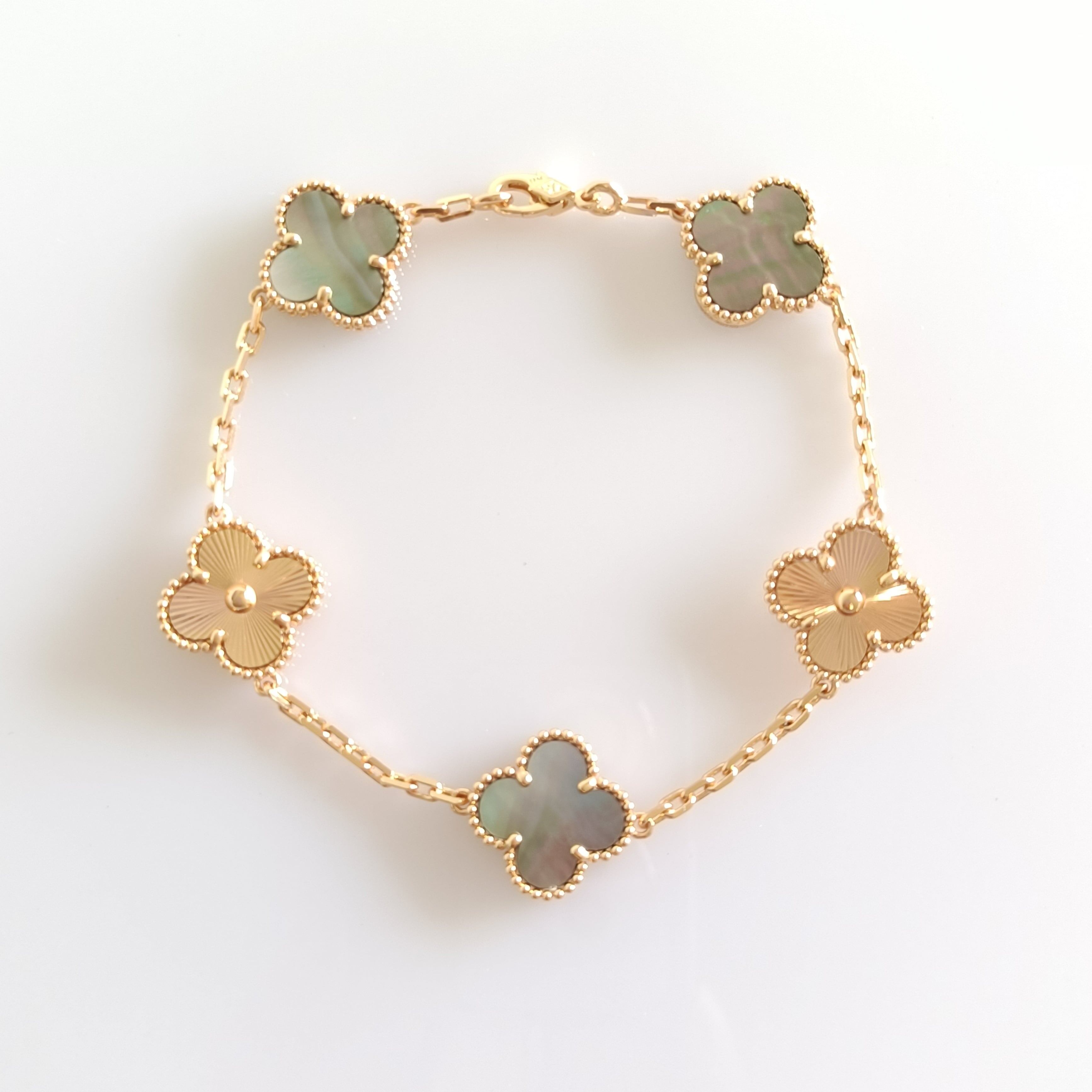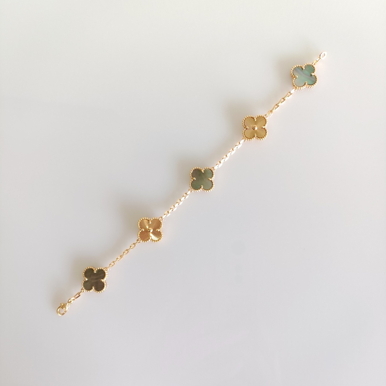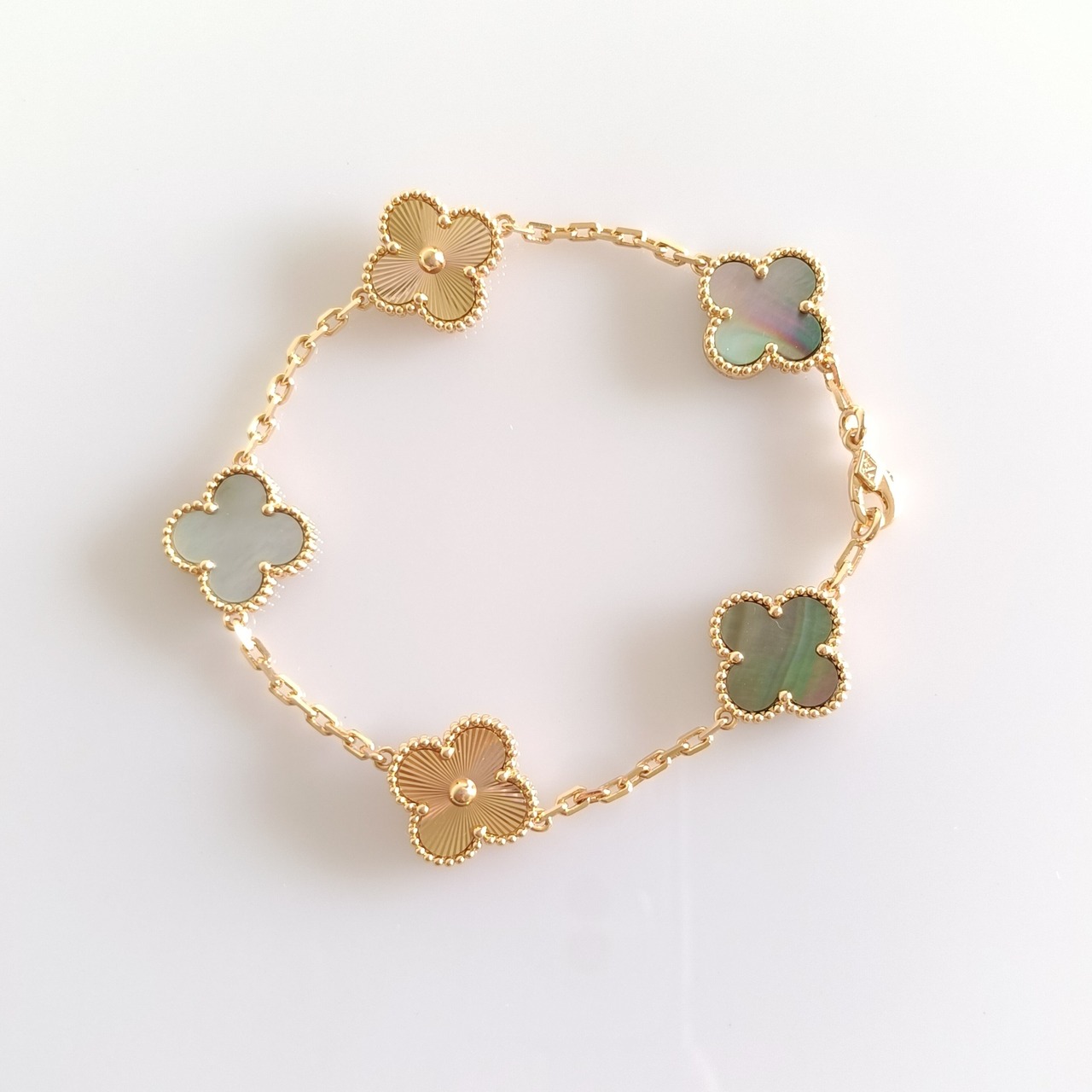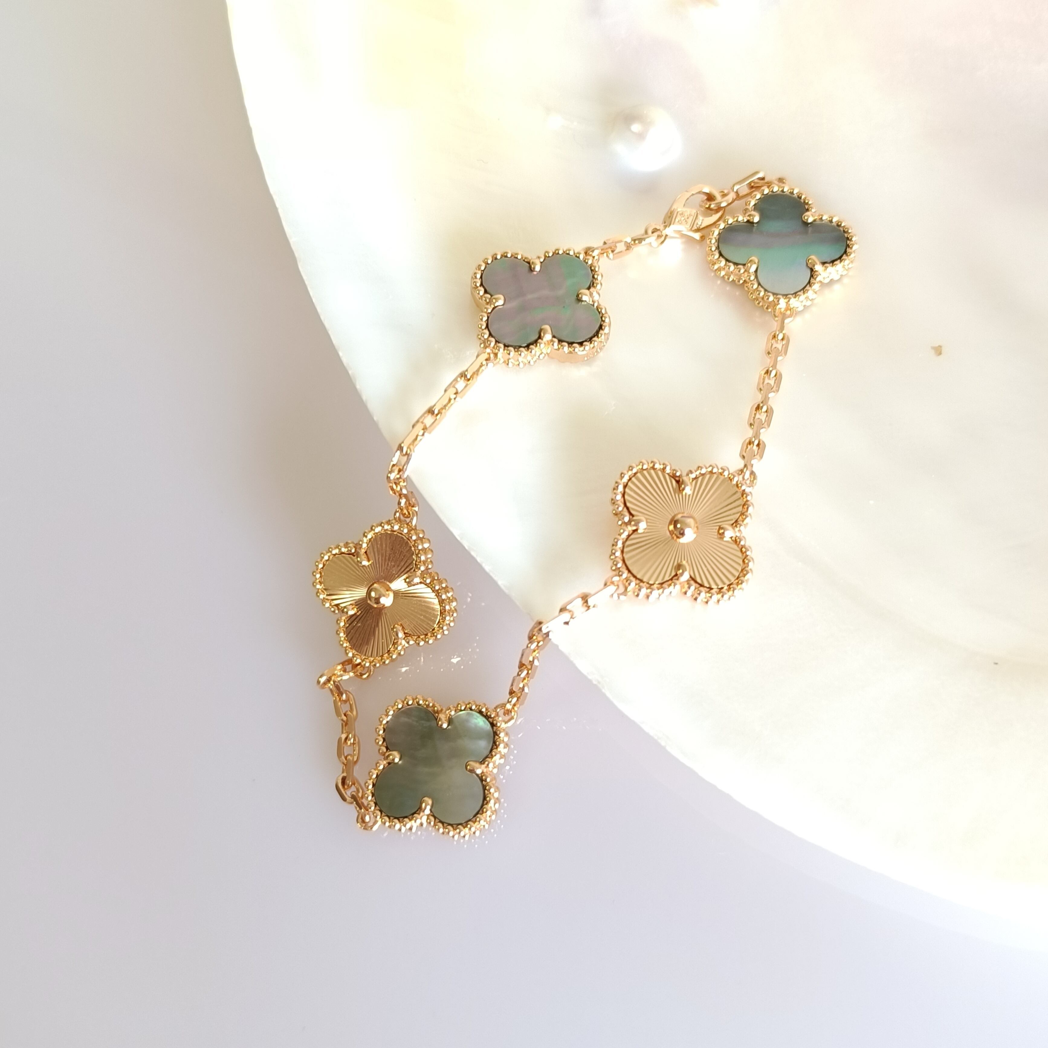 黒蝶貝 ギヨシェ ローズゴールド クローバーブレスレット