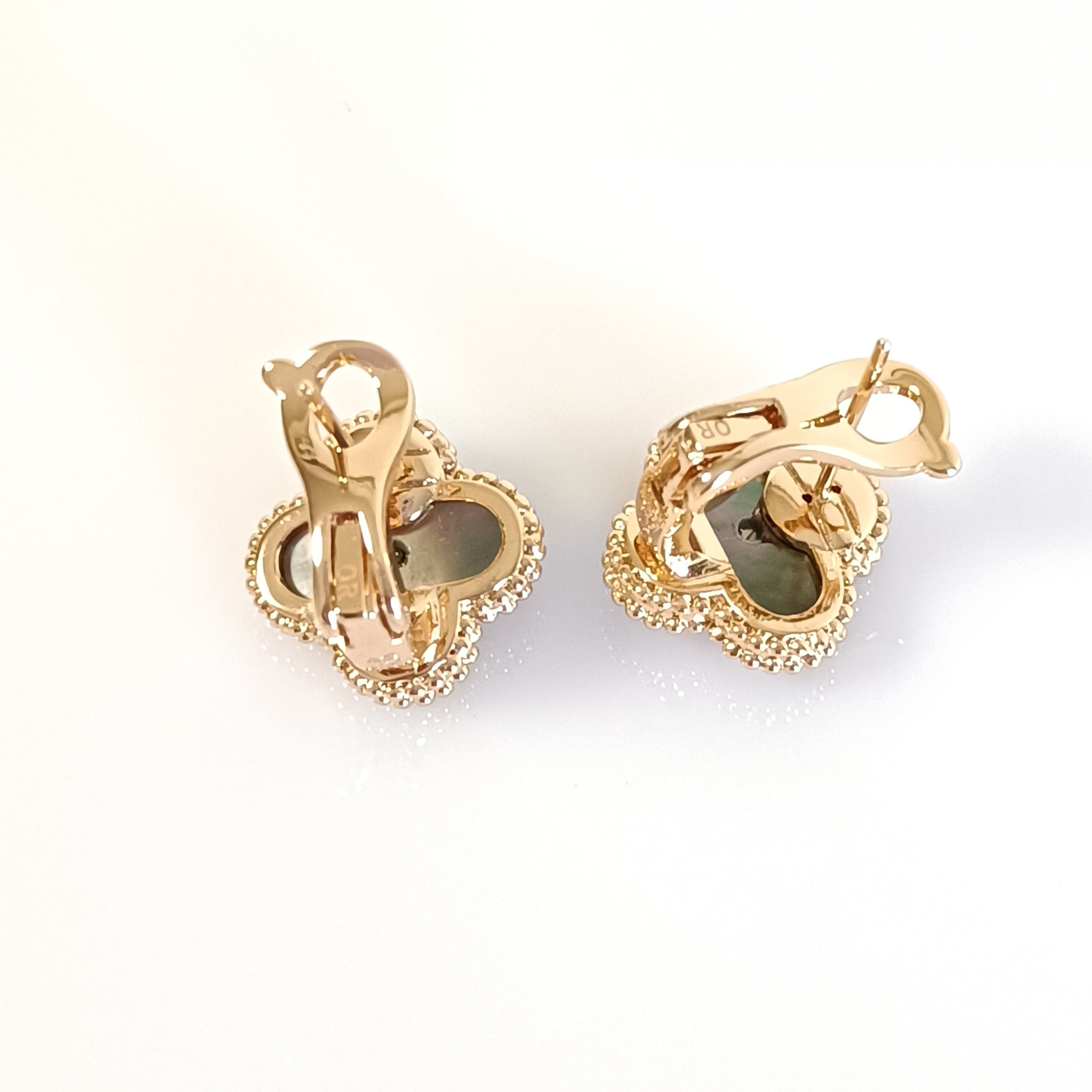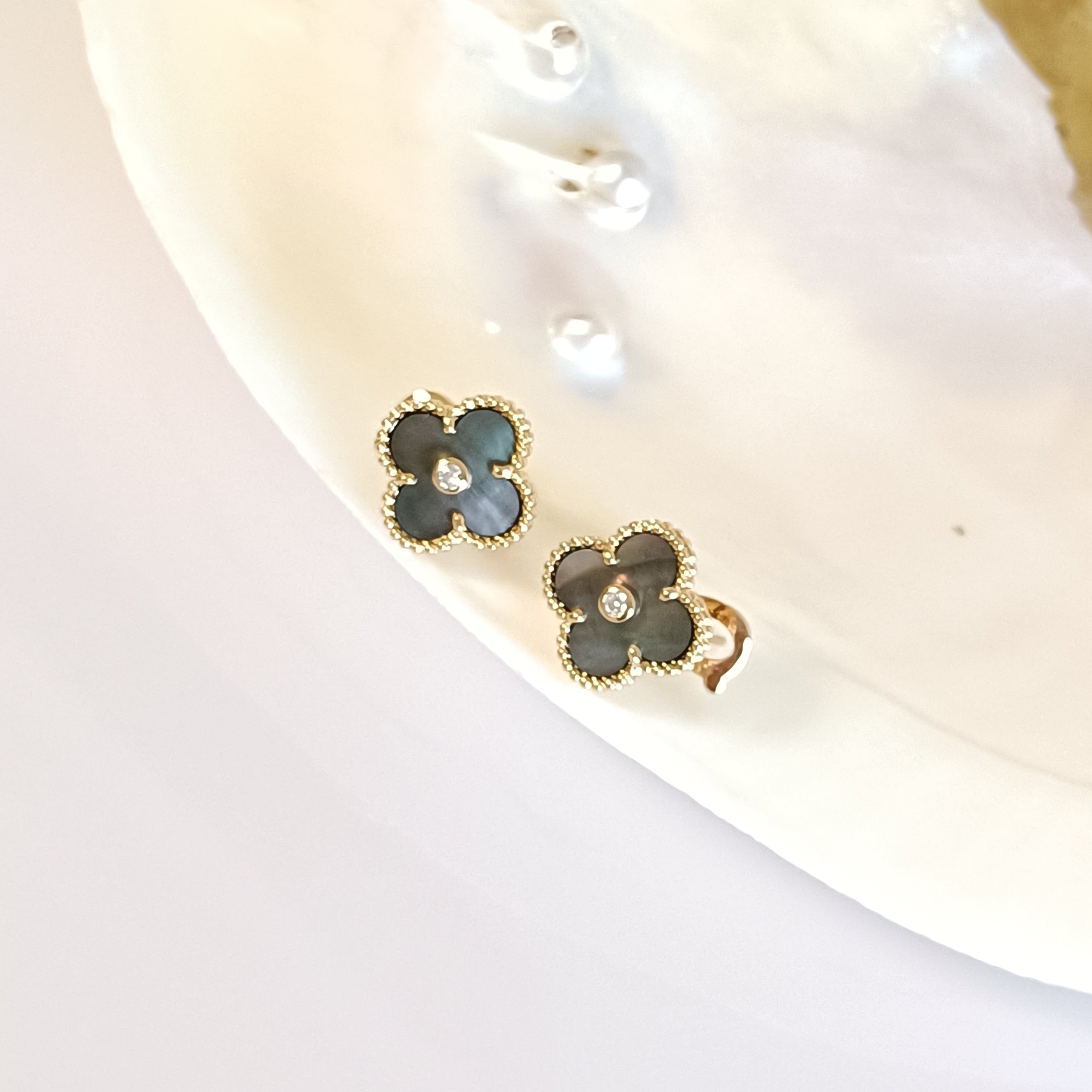 黒蝶貝 ダイヤ ローズゴールド クローバーピアス 15mm