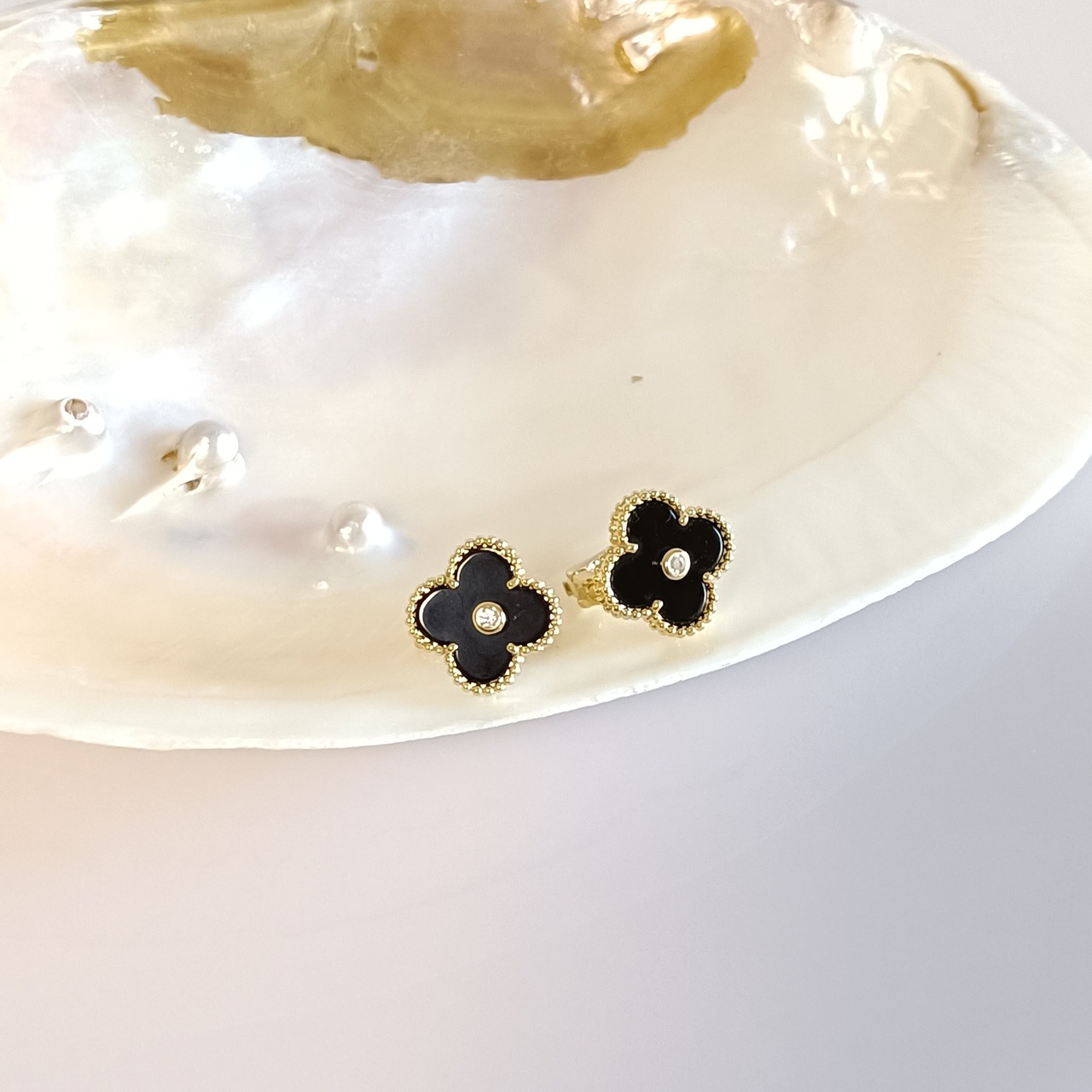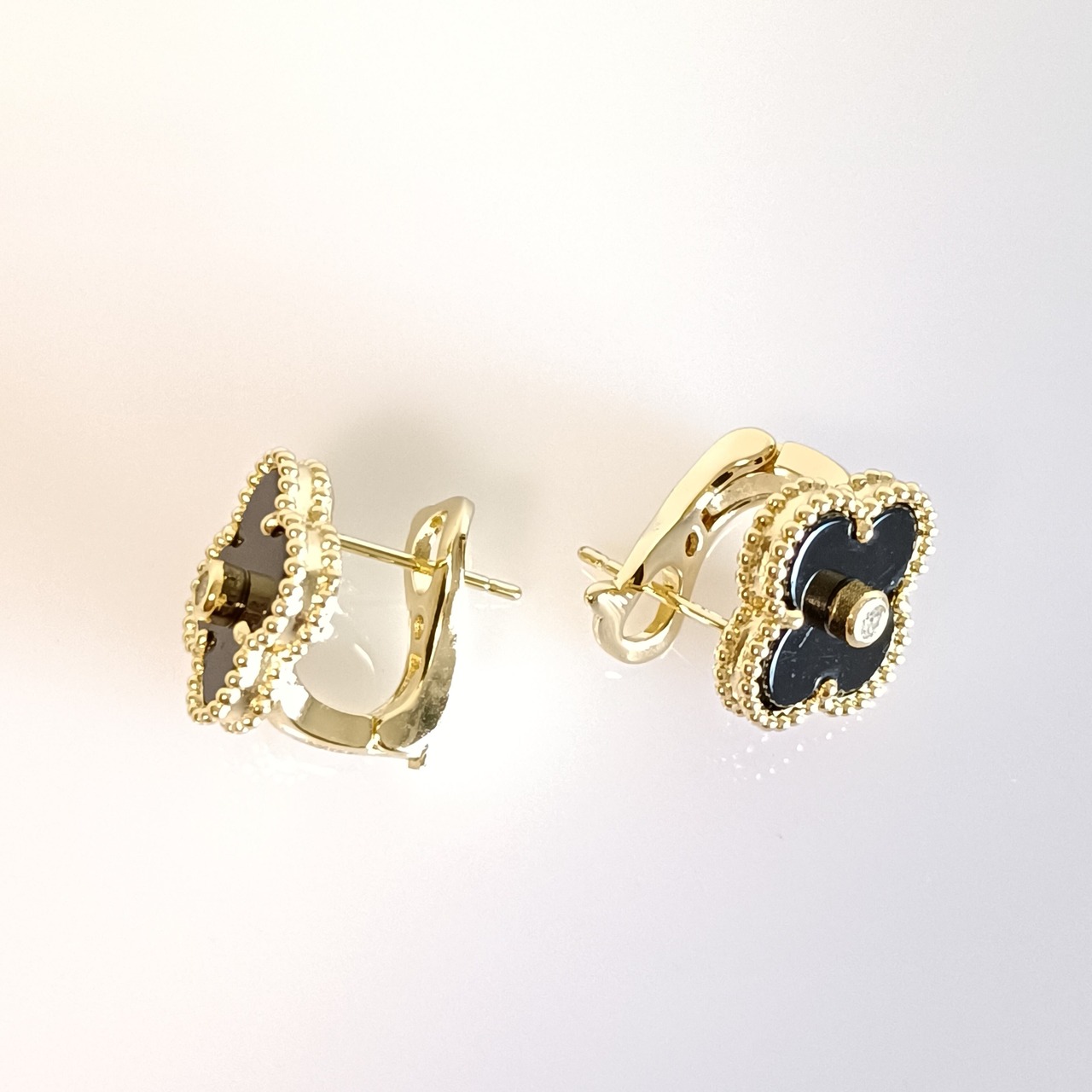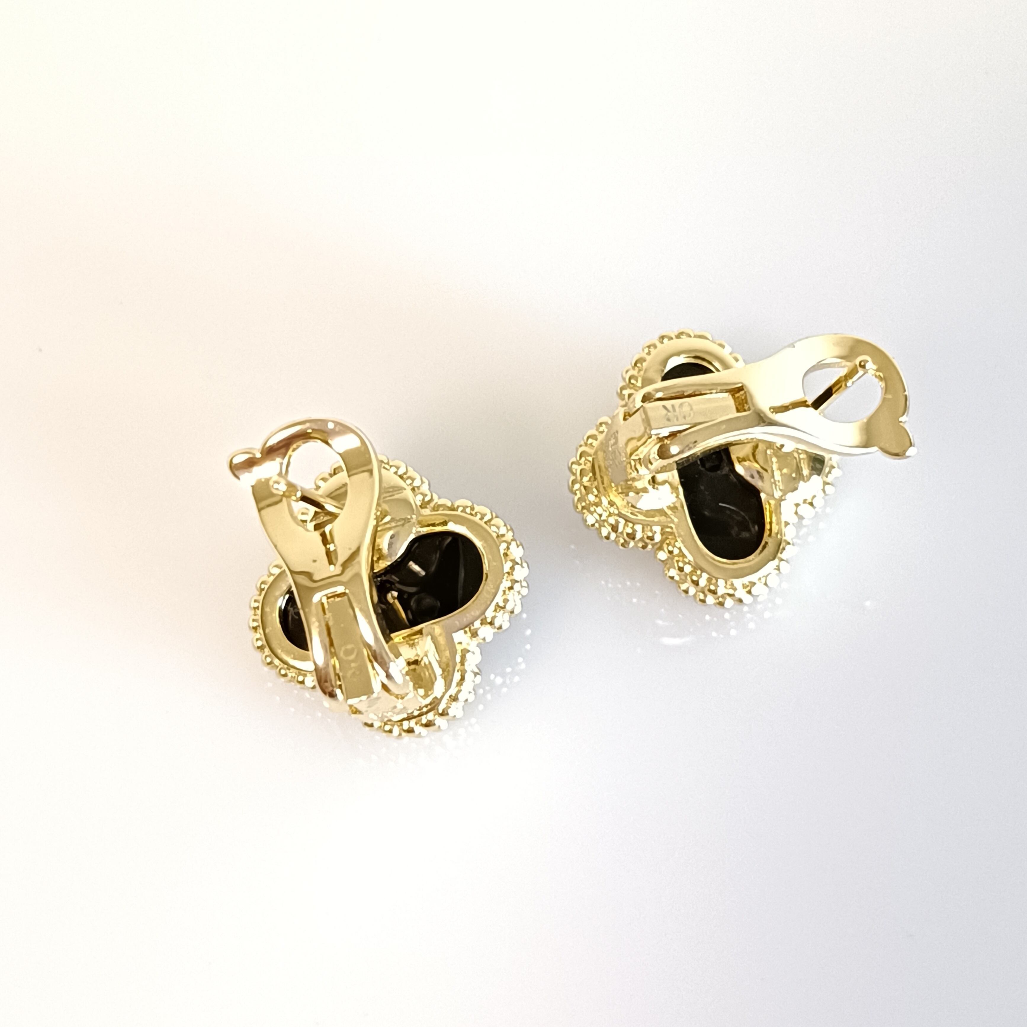 オニキス ダイヤ イエローゴールド クローバーピアス 15mm