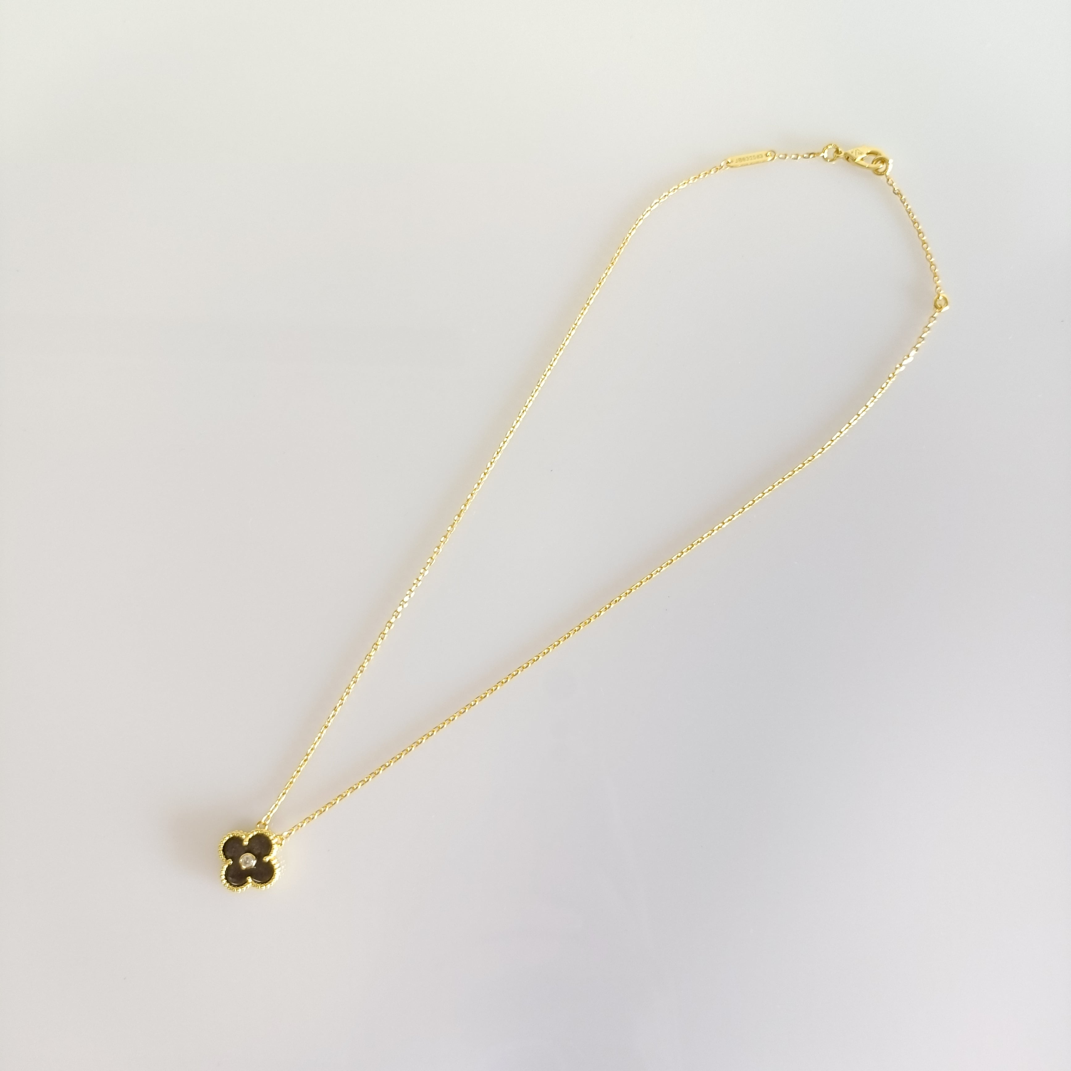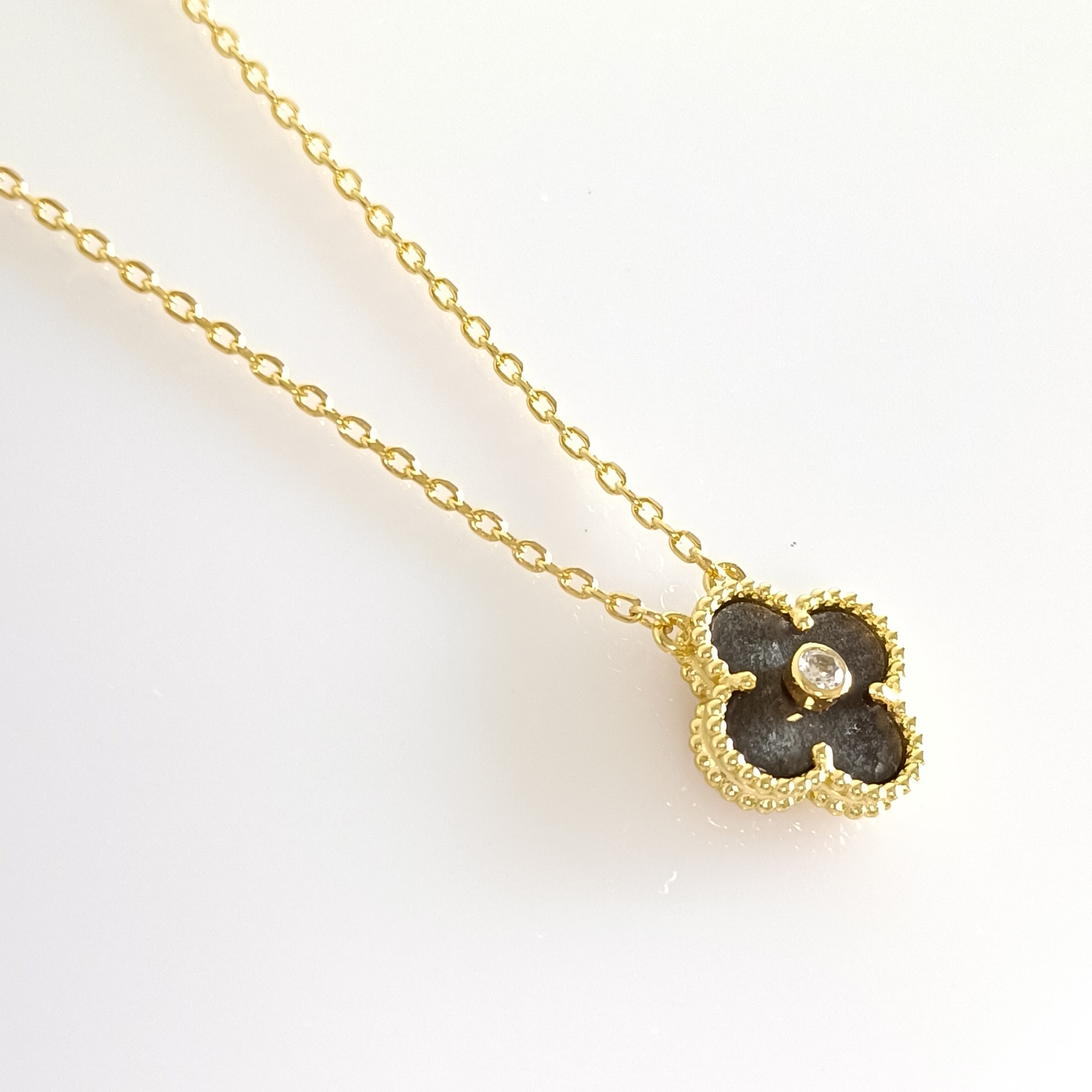 オブシディアン ダイヤ イエローゴールド クローバーネックレス 15mm