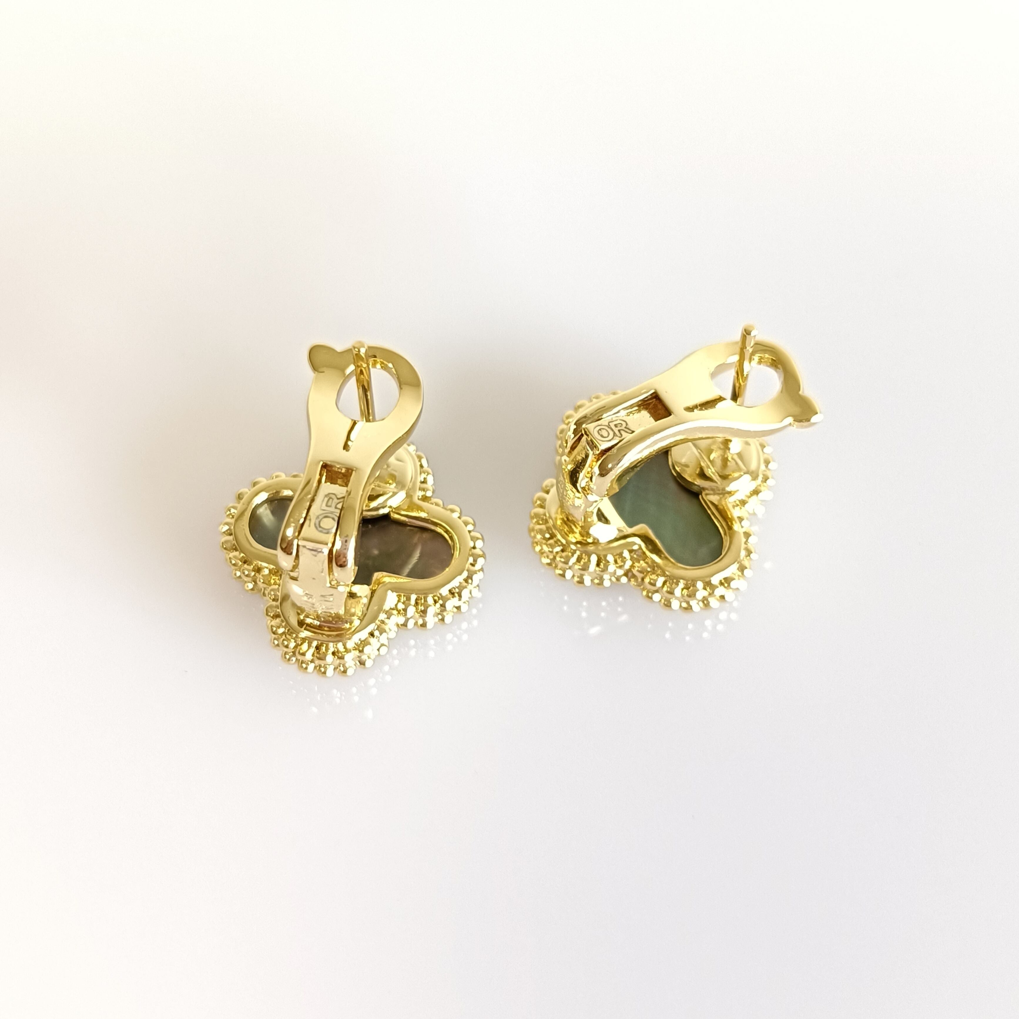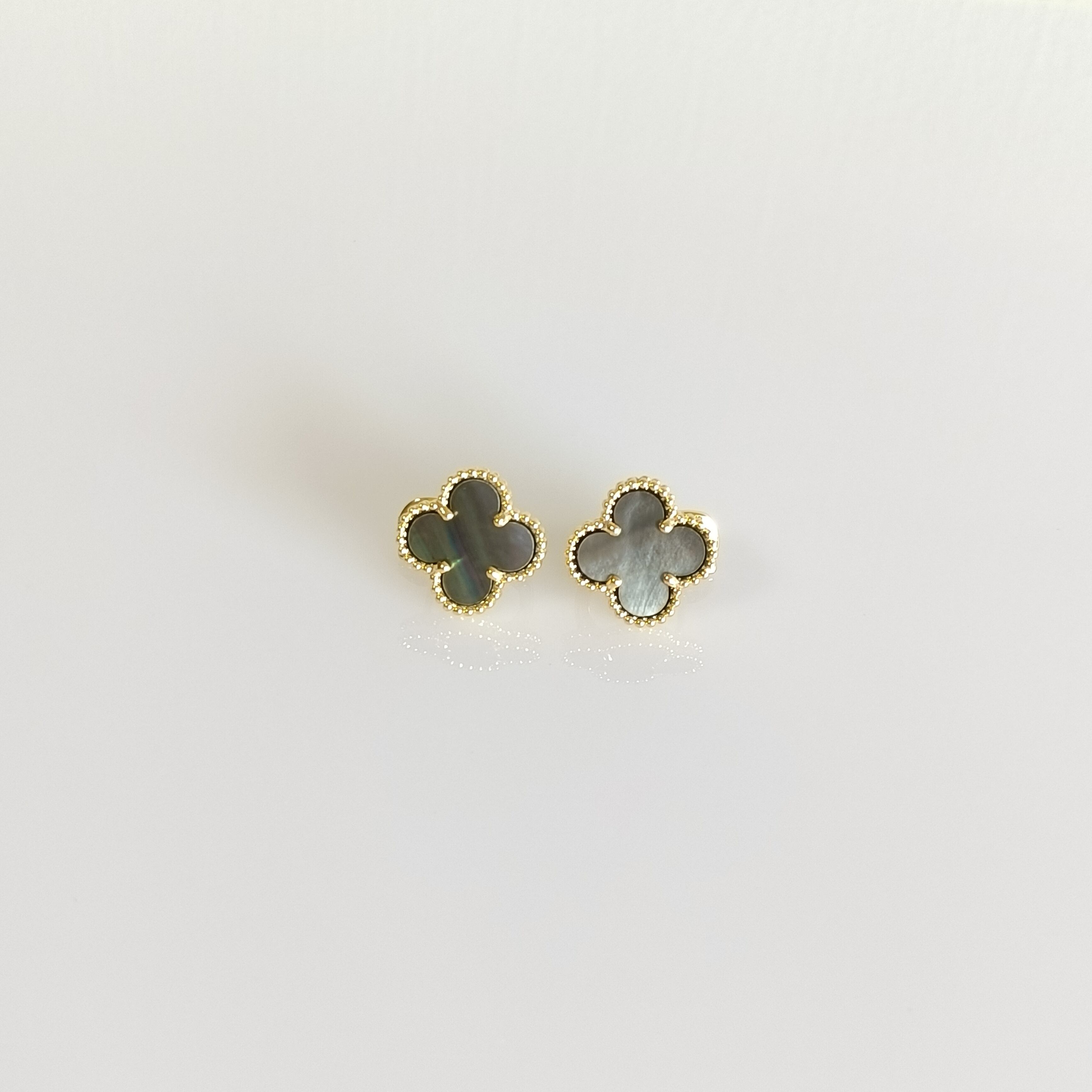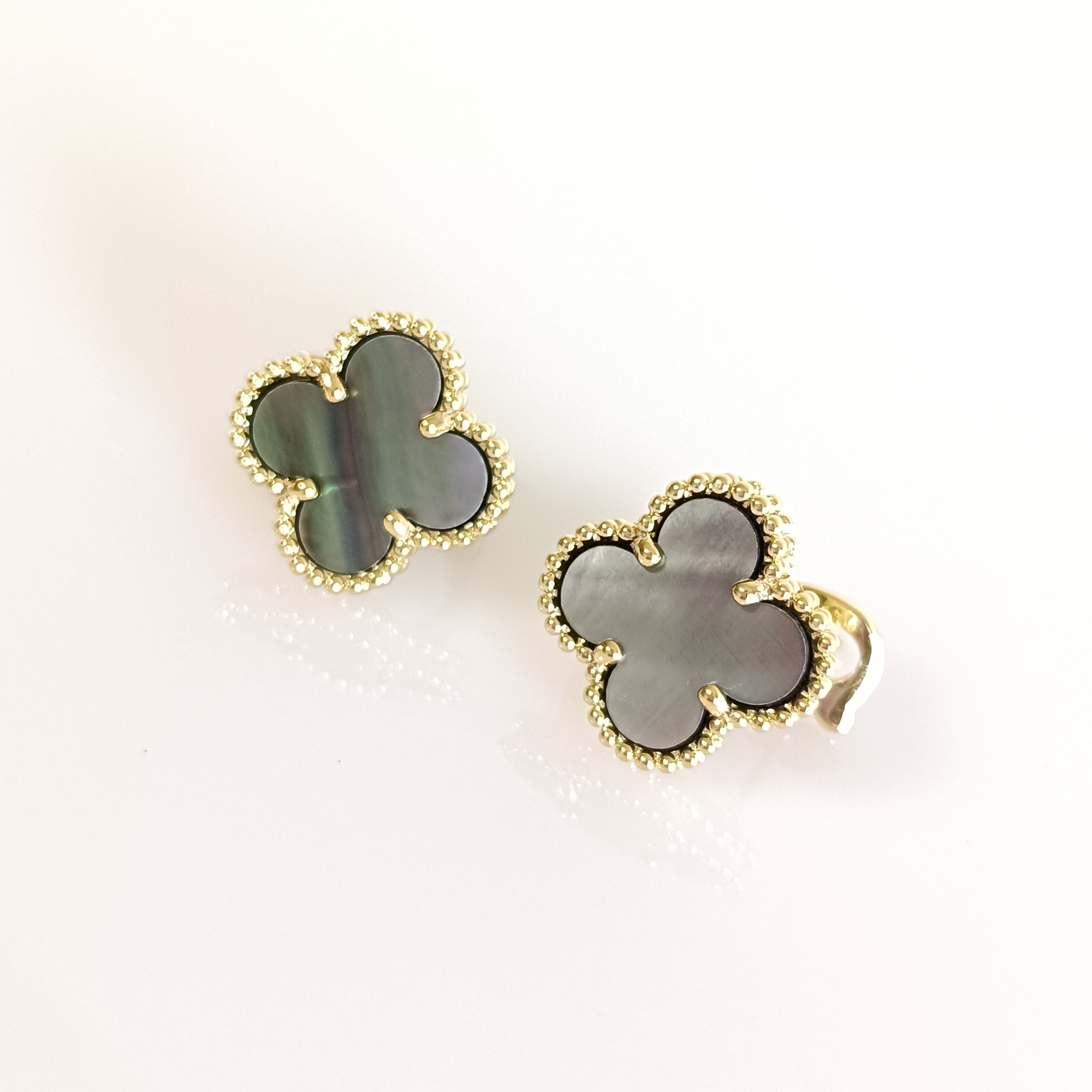黒蝶貝 イエローゴールド クローバーピアス 15mm