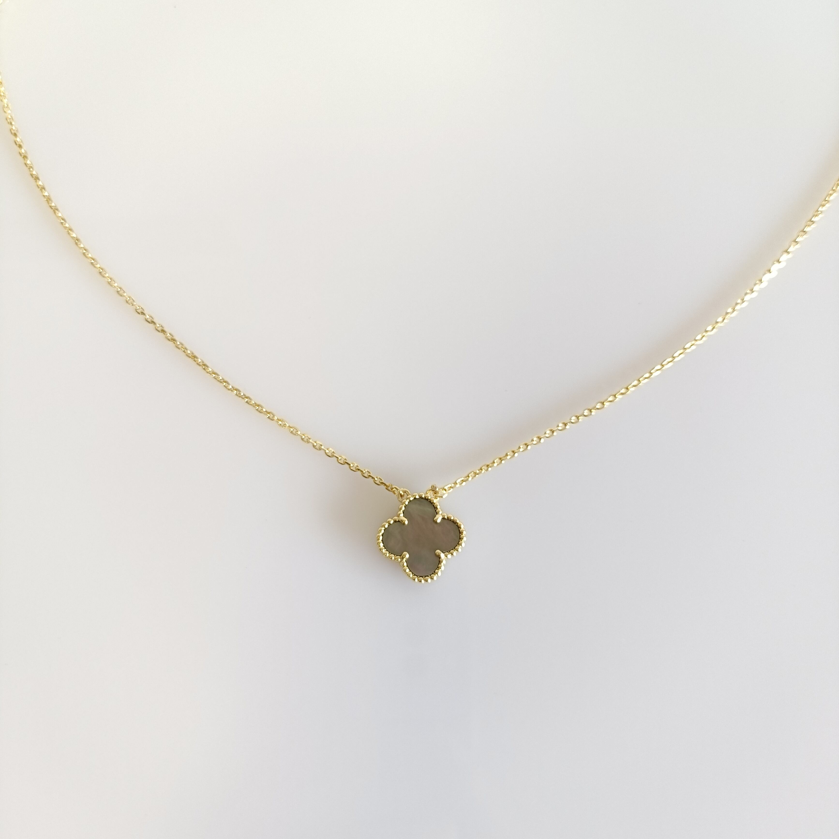黒蝶貝 イエローゴールド クローバーネックレス 15mm