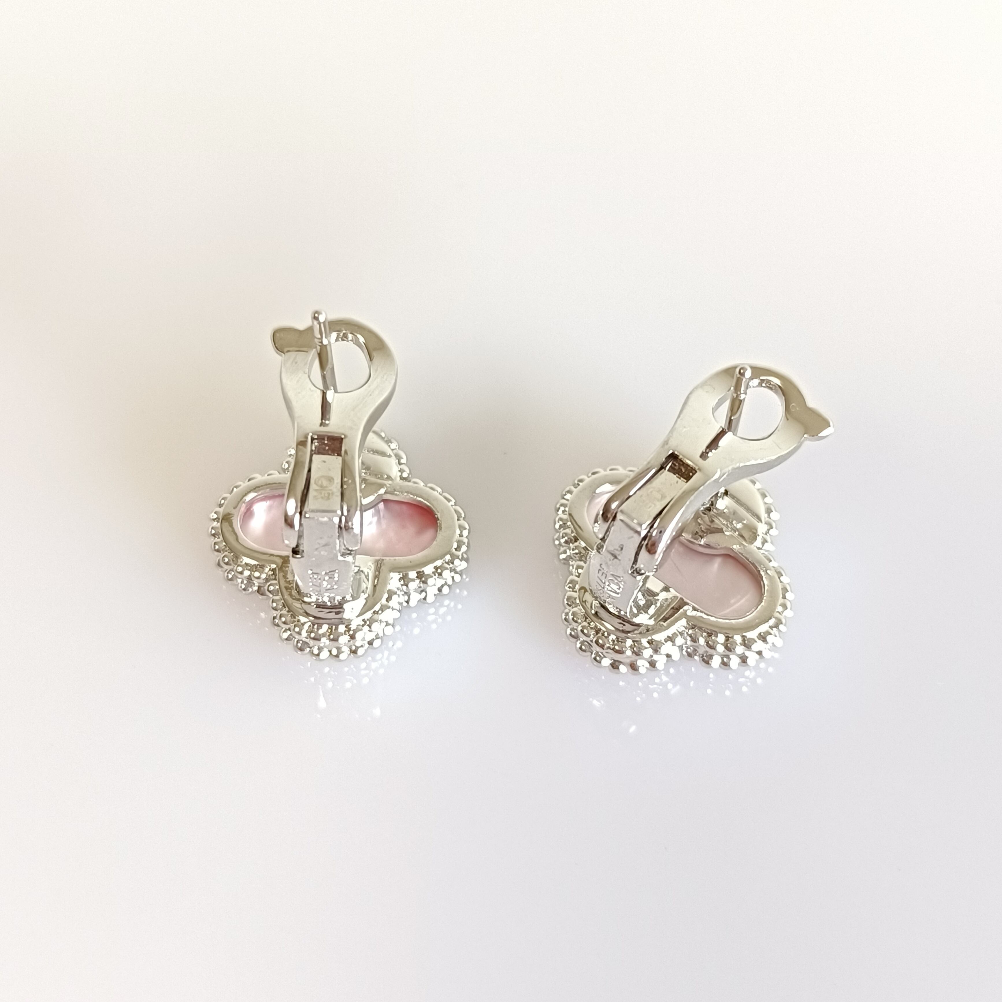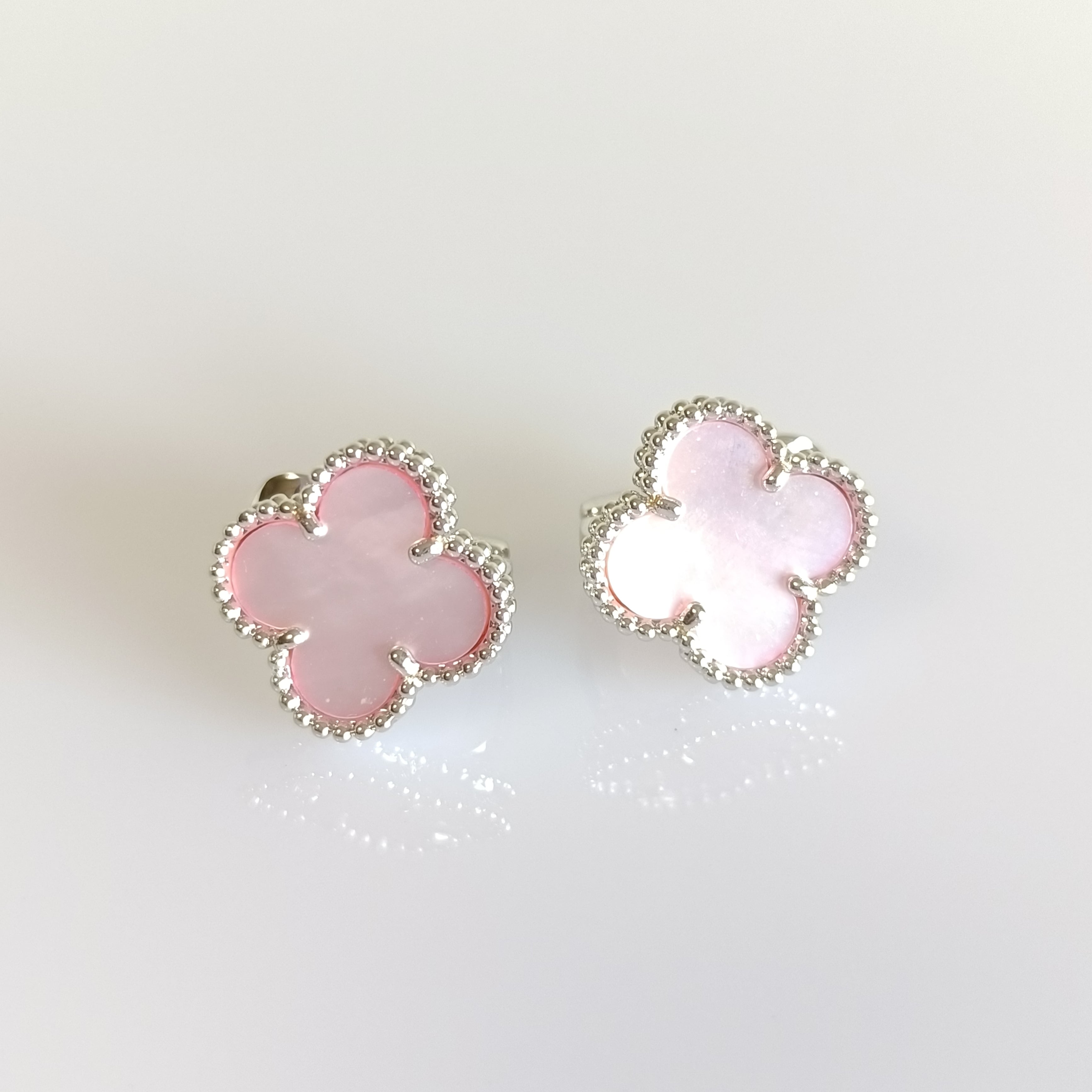 ピンク蝶貝 ホワイトゴールド クローバーピアス 15mm