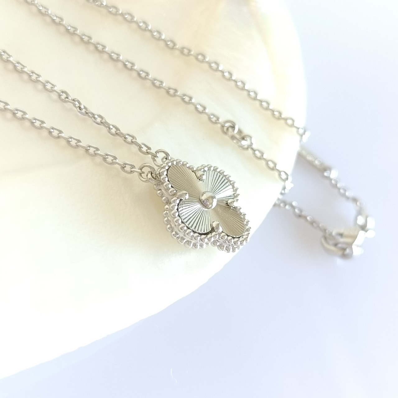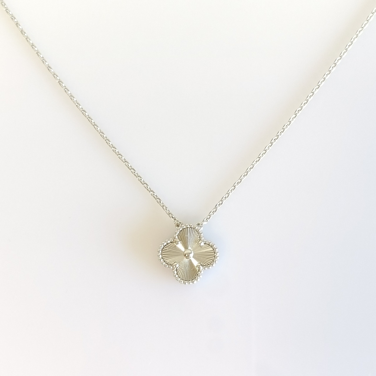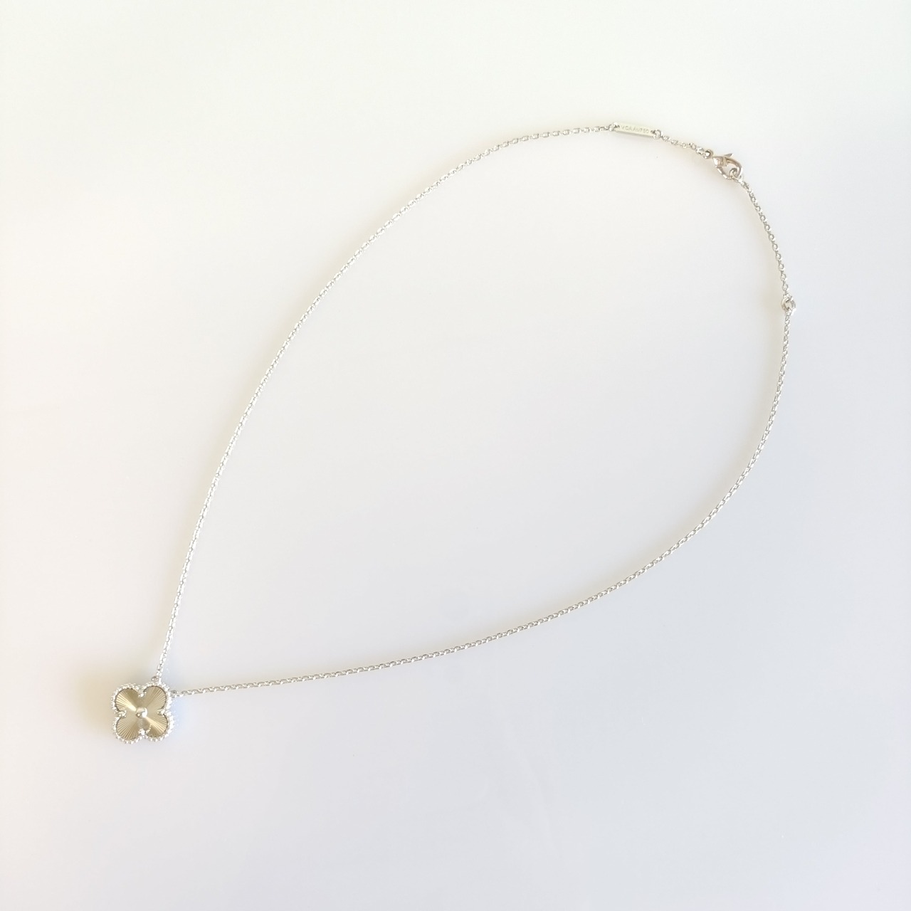 ギヨシェ ホワイトゴールド クローバーネックレス 15mm