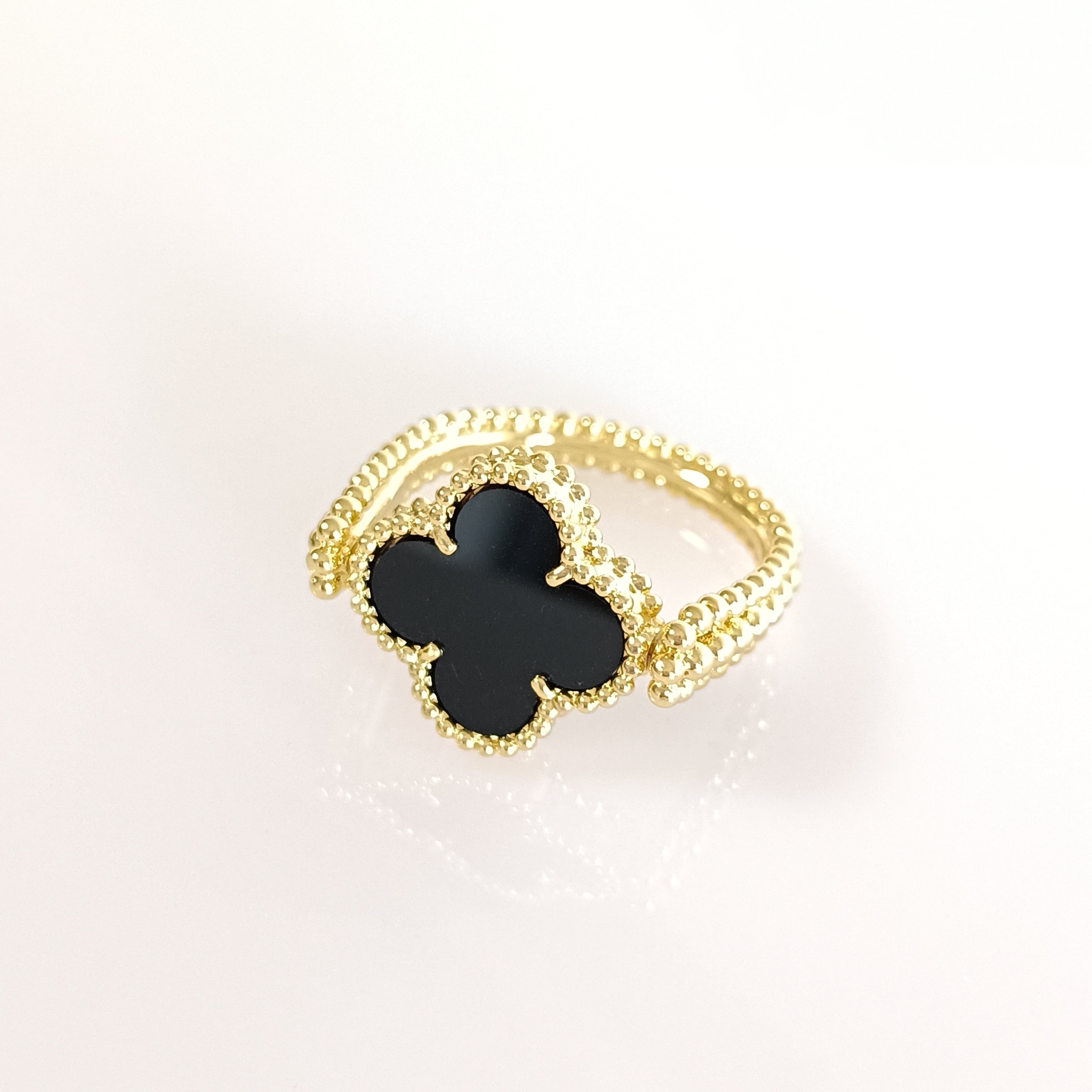 16号 オニキス イエローゴールド クローバーリバーシブルリング 15mm